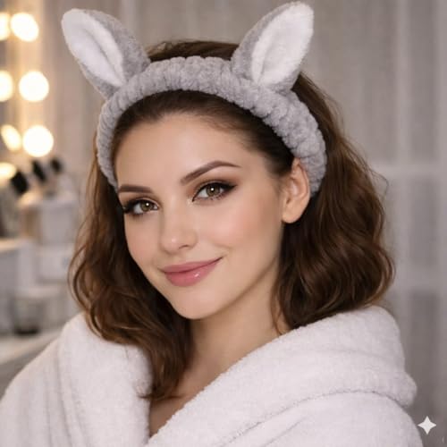 - تصميم أنيق بآذان: عصابة رأس ناعمة مصنوعة من القماش المخملي مع آذان أرنب لطيفة، مثالية للعناية بالبشرة والمكياج