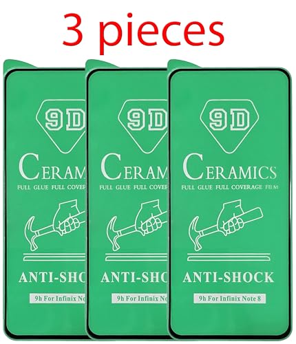 Generic - واقي شاشة سيراميك 9D G متوافق مع انفنيكس نوت 8 X683 من 3 قطع - اطار اسود