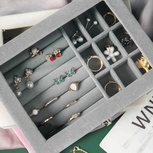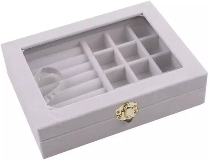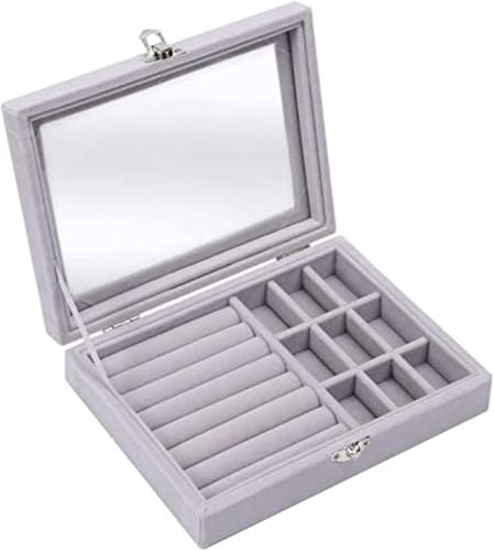 Spaceshoop - صندوق مجوهرات مخملي من قطعة واحدة تخزين المجوهرات والخواتم والاقراط مع نافذة شفافة رمادي رنا ستور