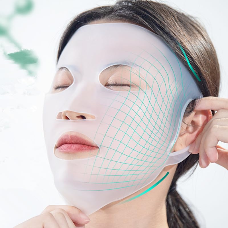 - للحصول على سطح سيليكون ثلاثي الأبعاد، الصقي الورقة وضع قناع السيليكون عليها. وهذا يساعد على احتجاز الجوهر وتأخير فقدانه. مرطب للوجه. تصميم فوق الأذن يساعد على منع أذنيك من الانزلاق ويمنحك تجربة أفضل