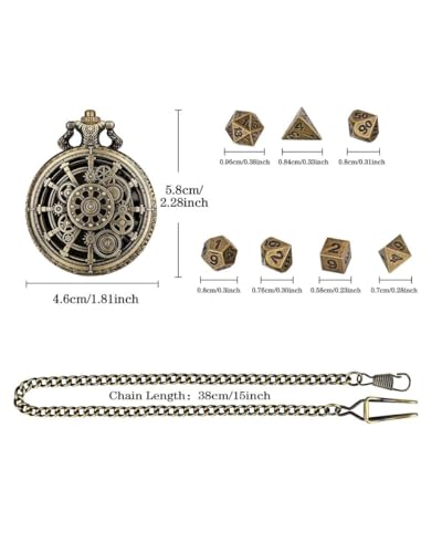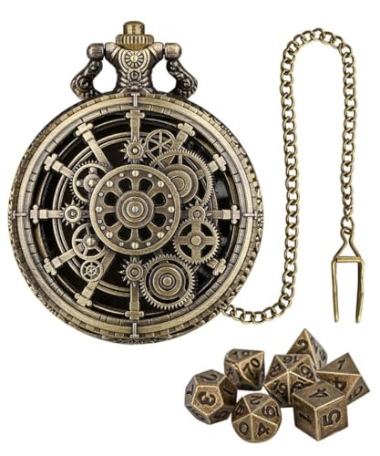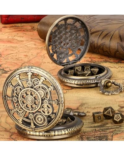 fashion mania - ساعة جيب للجنسين مع مجموعة نرد صغيرة، تصميم ستيمبنك جوفاء