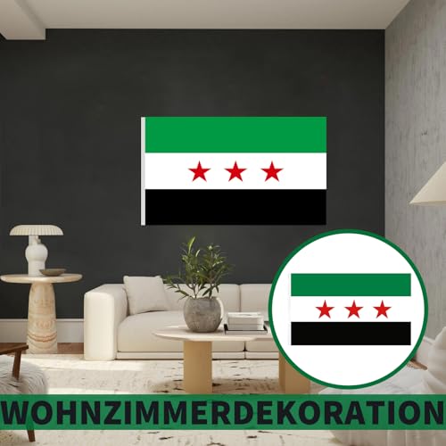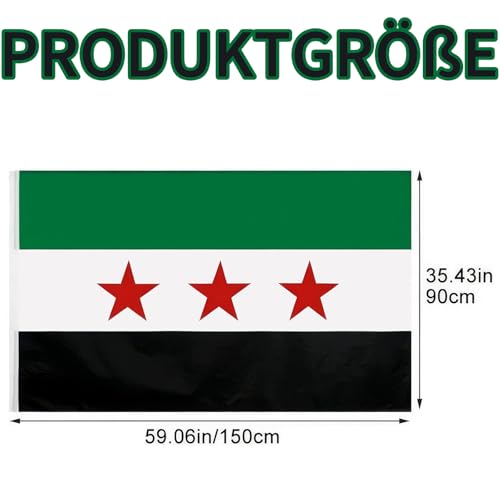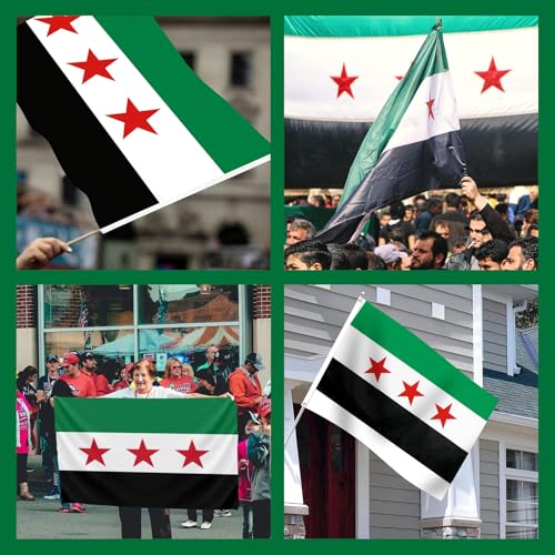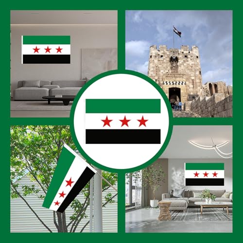 agogue - 1 علم سوري، 90 × 150 سم، علم سوري، الوان نابضة بالحياة وعلم سوريا، اخضر، عملي، للحدائق الداخلية والخارجية، ديكور حفلات المهرجانات، في الهواء الطلق