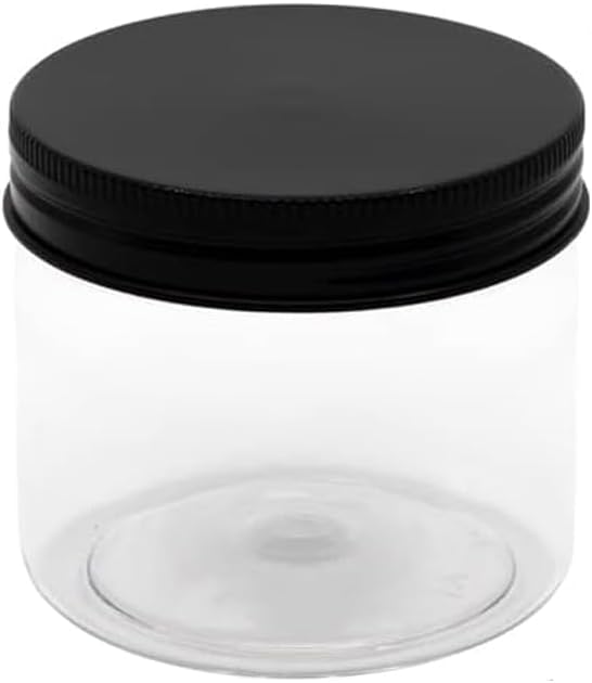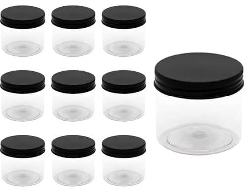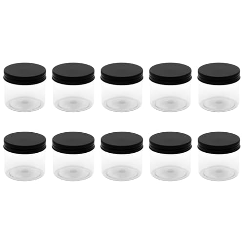 Generic - 10 قطعة برطمان بلاستيك لون ابيض شفاف حجم 150 ملي- قطر 7 سنتي - غطاء اسود و طبه - فوارغ لاعادة التعبئة تخزين علب دائرية