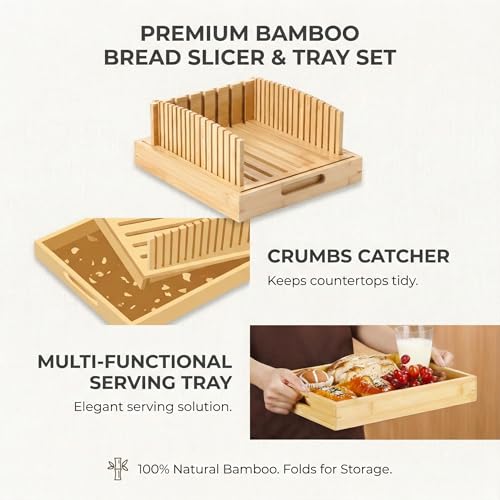 - صينية التقاط الفتات والتقديم 2 في 1 تحافظ على سطح مطبخك خاليًا من الفوضى. تجمع الصينية السفلية المدمجة الفتات بشكل فعال أثناء التقطيع. الدليل قابل للفصل، مما يحول القاعدة إلى صينية تقديم أنيقة من الخيزران للفواكه أو الجبن أو شرائح الخبز الطازج. مزيج مثالي من العملية والجمال لطاولة الإفطار الخاصة بك