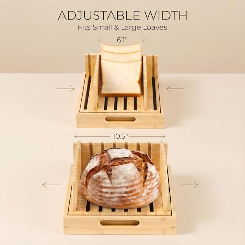LukieBoee - قطاعة خبز من الخيزران مقاس 10.5 انش للخبز المنزلي - دليل تقطيع العجين المخمر مع اداة التقاط الفتات وهيكل ثابت - هدايا خبز لعيد الحب