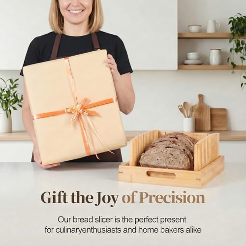 - أتقن فن تقطيع العجين المخمر (تصميم بعرض 10.5 انش) على عكس القطاعات الضيقة القياسية، تتميز قطاعة الخبز الخاصة بنا للخبز المصنوع منزليًا بدليل عريض للغاية 10.5 انش، مصمم خصيصًا لأرغفة العجين المخمر الحرفي والكرات المستديرة والكعك اللذيذ. يضمن العرض الكبير أن السكين ينزلق بسلاسة دون أن يعلق، مما يمنحك شرائح احترافية ومتساوية في كل مرة - بدءًا من قطع الساندويتش الرقيقة إلى الخبز المحمص السميك