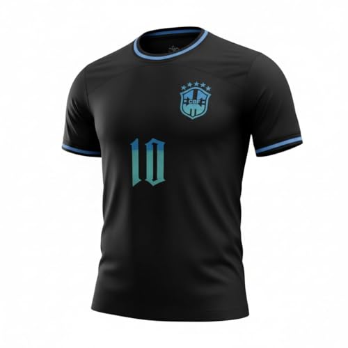 Generic - تيشرت كرة قدم أسود كلاسيك بطباعة رقم 10 – مستوحى من منتخب البرازيل – للكبار من الجنسين
