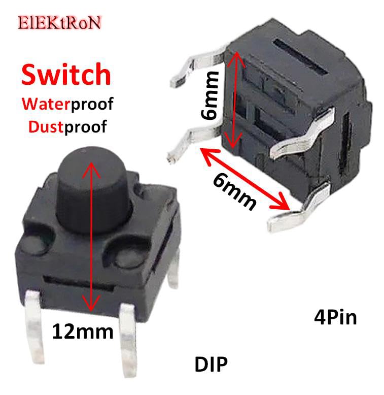 Generic - عدد 10 قطع من زر باور - مايكرو عالي الأداء متين مقاوم للغبار ومقاوم للماء، زر ضغط لحظي 4 دبابيس (6 ملم × 6 ملم × 12 ملم) DIP