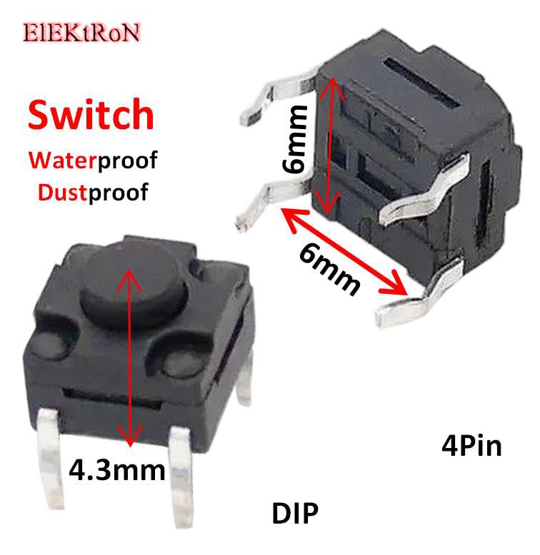 Generic - زر طاقة- مايكرو عالي الأداء متين مقاوم للغبار ومقاوم للماء، زر ضغط لحظي 4 دبابيس (6 ملم × 6 ملم × 4.3 ملم) دي اي بي، 10 قطع
