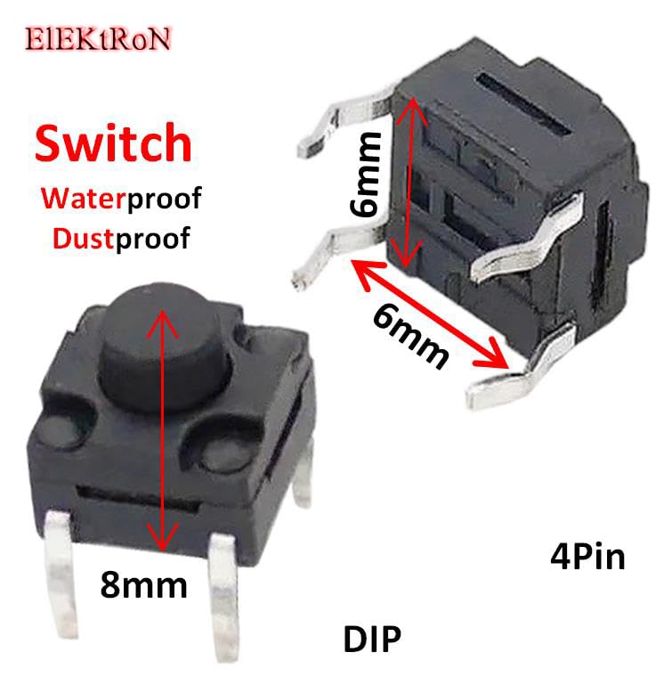 Generic - عدد 10 قطع من زر باور - مايكرو عالي الأداء متين مقاوم للغبار ومقاوم للماء، زر ضغط لحظي 4 دبابيس (6 ملم × 6 ملم × 8 ملم) DIP