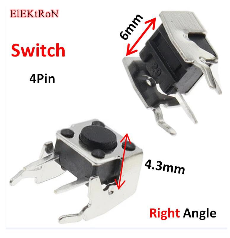 Generic - زر ضغط مربع عالي الأداء متين يعمل باللمس مع خاصية إعادة الضبط الذاتي و4 دبابيس ودعامة بزاوية 90° للوحة الدوائر المطبوعة (6 ملم × 6 ملم × 4.3 سم) DIP، 10 قطع