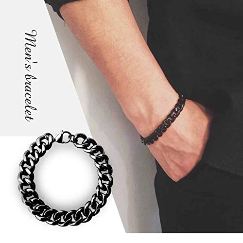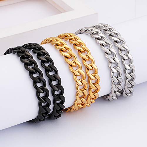 generic - اساور بحلقات كوبية فيجارو كيرب من الستانلس ستيل 10 ملم للرجال والاولاد، اساور ذهبية فضية سوداء، معدن، غير معروف، مقاس واحد