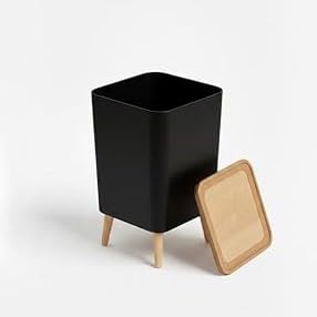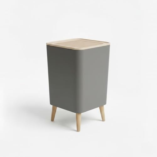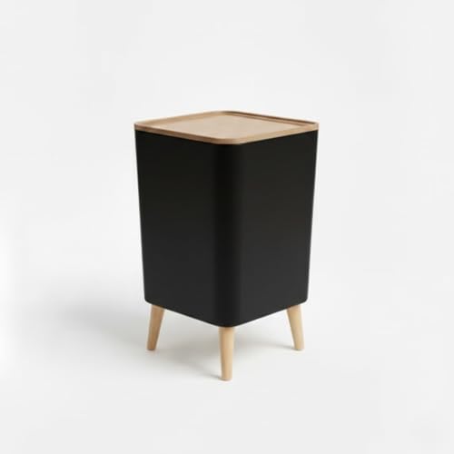 Generic - باسكت نفايات مربع بسعة 10 لتر - تصميم قاعدة رجل خشبي - غطاء تاتش سهل الاستخدام للمطبخ والمنزل - سلة مهملات انيقة لديكور المنزل - الوان عشوائية - سلة مهملات عصرية انيقة لديكور المنزل