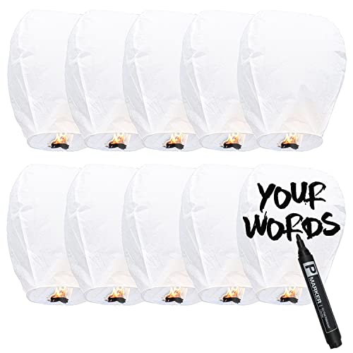 Oyayubi - فوانيس صينية طائرة من ورق متين مقاوم للحريق ومواد صديقة للبيئة لمستلزمات الحفلات والزفاف وأعياد الميلاد والهالوين والكريسماس والمهرجانات للاطلاق في السماء لتخليد الذكريات، لون أبيض، عبوة من 10 قطع