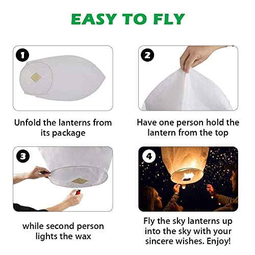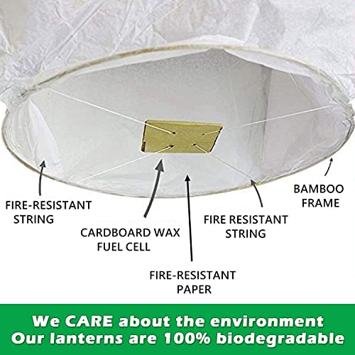 - [مثالية لأي مناسبة] تُعد فوانيس السماء الطائرة في الليل منظر جميل ورومانسي. سيحب الضيوف إطلاق فانوس مضيء في أي مناسبة خاصة. يمكنك التقاط الكثير من الصور الجميلة لذكرى جميلة ومشاركتها مع أصدقائك. مثالية لحفلات الزفاف والتخرج والذكرى السنوية، والاحتفال بذكرى شخص محبوب وعيد الحب والحفلات وحفلات إطلاق النيران والمشاعل في الهواء الطلق وأعياد الميلاد والنصب التذكارية والمراسم والجنازات، وأي مناسبات احتفالية أخرى.
