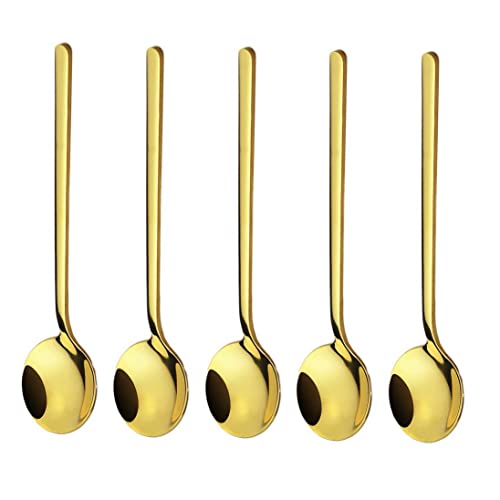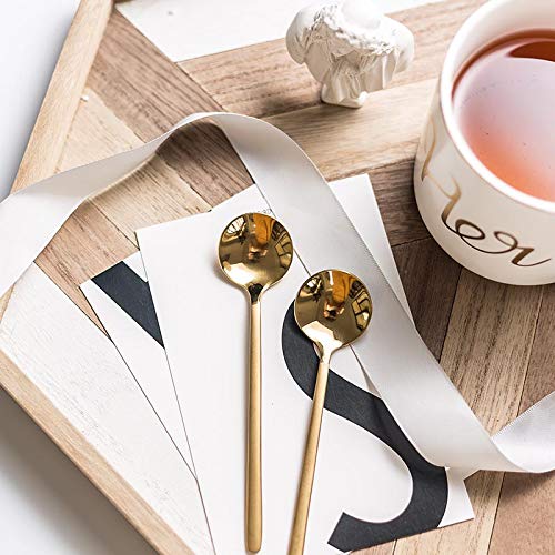 SZLFSX - مجموعة معالق اسبريسو من الفولاذ المقاوم للصدأ 18/10 للقهوة والسكر والحلويات والكيك والايس كريم والشوربة والكابتشينو والمقبلات بمقاس 13.5 سم ولون ذهبي ومكونة من 10 قطعة