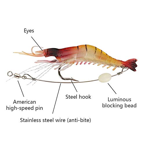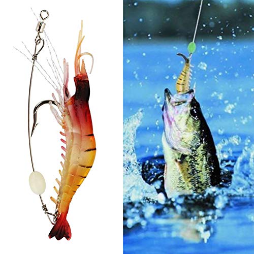 Generic - طقم طعوم جمبري ناعمة واقعية مزودة بخطافات وخرز مناسبة لصيد الأسماك في المياه العذبة والمالحة مثل الباس التروت البلطي الوايتينج وغيرها، 10 قطع