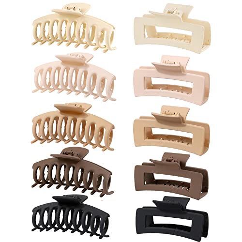 Generic - مشابك شعر كبيرة غير قابلة للانزلاق للنساء والفتيات، مشابك مخلبية غير لامعة لتثبيت قوي للشعر الكثيف والشعر الرقيق، 10 قطع (بي)