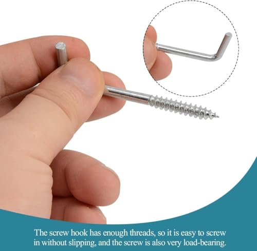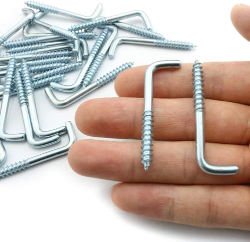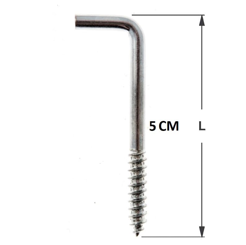 Generic - 10 خطافات مسامير لولبية بشكل حرف L بزاوية يمين طول = 5سنتيميتر ، صلب كربوني، فضي، الحد الأقصى للوزن الموصى به: 15.0 كيلوجرام (55 ملى)