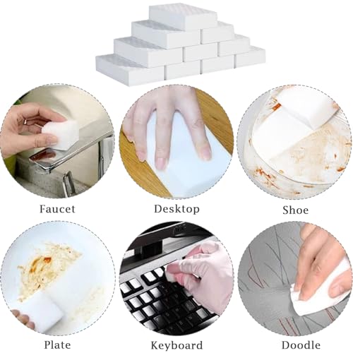 Shunshi - أستيكة تنظيف إسفنجية سحرية (10×6×2 سم)، وسادات تنظيف إسفنجية ميلامين متعددة الأغراض غير قابلة للخدش لتنظيف حائط المطبخ والحمام، 10 قطع من شونشي