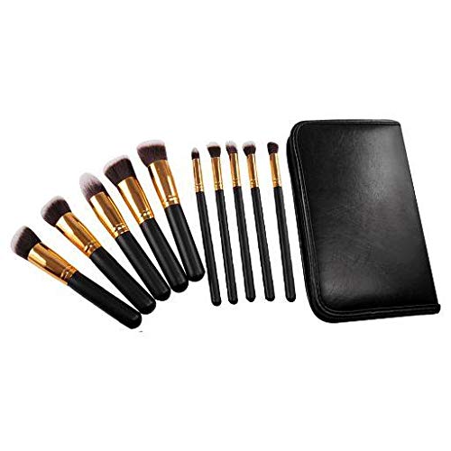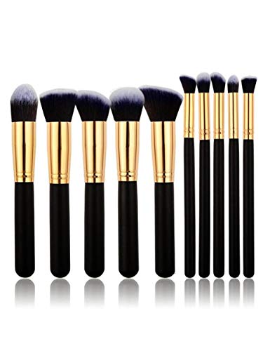 غير معروف - مجموعة فرش مكياج عالية الجودة بلون اسود وذهبي من 10 قطع