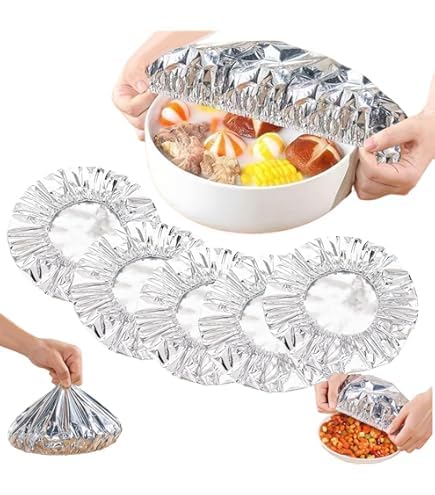 Generic - 10 قطع من اغطية اوعية مرنة من رقائق الالومنيوم متعددة الاستخدامات، عازلة للحرارة، مقاومة للغبار، تناسب جميع الاوعية بنسبة 99%
