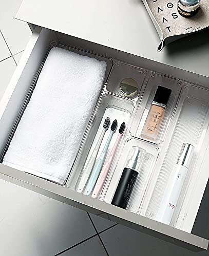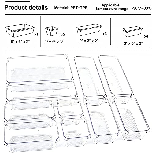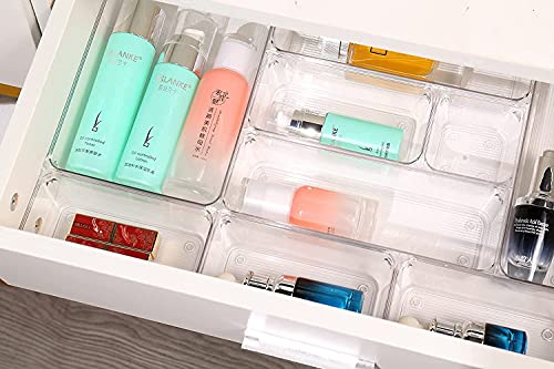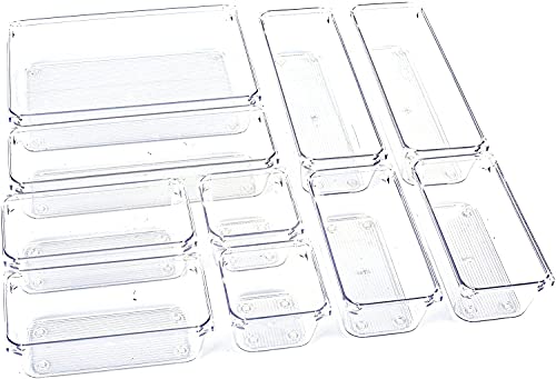 Letinaner - صواني تنظيم أدراج المكتب الشفافة من مادة بي اي تي لتنظيم المكياج وأدوات المطبخ وصناديق تنظيم الأدوات، للمكتب والخزانة والحمام، خالية من البيسفينول أ، 10 قطع