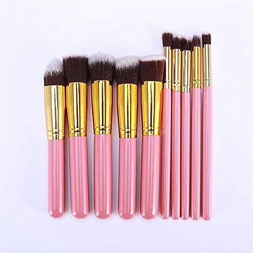 مجموعة فرش مكياج فاخرة مكونة من 10 قطع من مستحضرات التجميل ومزج الأساس ومزج الكحل وظلال العيون ومجموعة أدوات فرشاة بودرة الوجه والذهبي الوردي