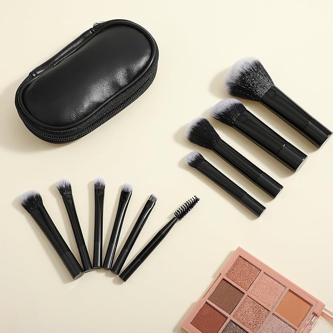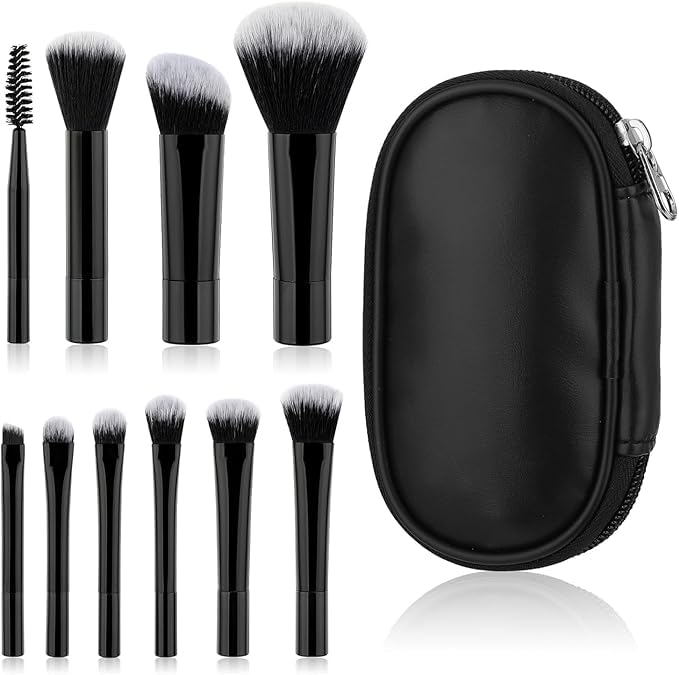 GQ - مجموعة فرش مكياج صغيرة للسفر 10 قطع، مع شنطة مكياج
