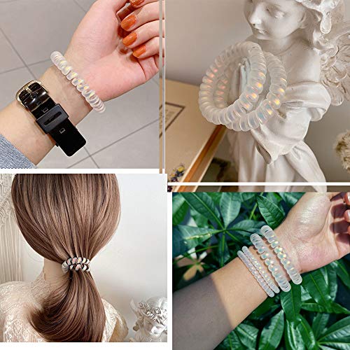 SIADEE - ربطات شعر حلزونية بلاستيكية للشعر الكثيف، توك شعر أستك ملفوفة متعددة الألوان لا تجعد الشعر على شكل سلك تليفون للنساء والبنات، 10 قطع، بألوان حورية بحر مطفية ولامعة