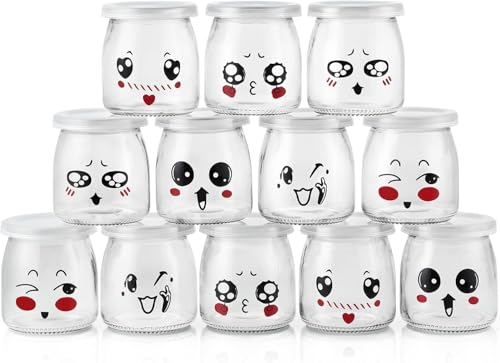 Generic - طقم علب زجاج للزبادي والحلويات بأشكال تريندية وكرتوني، تصميمات محكمة للغلق - خامة زجاج مستورد، 10 قطع مناسبة لتخزين الزبادي والمربى وا - من جينيريك