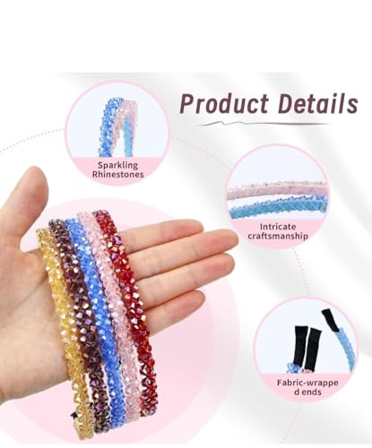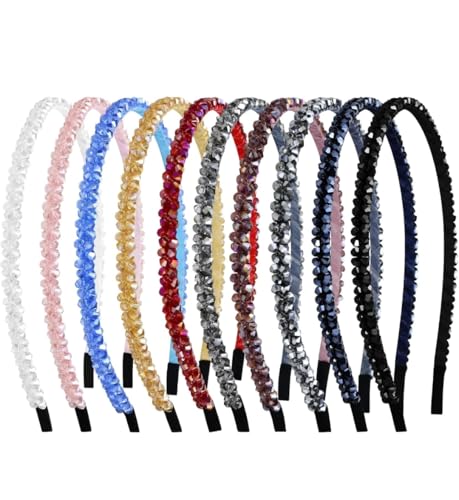 Generic - مجموعة من 10 قطع من عصابات الرأس المرصعة بأحجار الراين للنساء، عصابة رأس لامعة مع كريستال، عصابات رأس مرصعة بأحجار الراين اللامعة للفتيات، عصابات شعر رفيعة مرنة، إكسسوارات حامل شعر سميك
