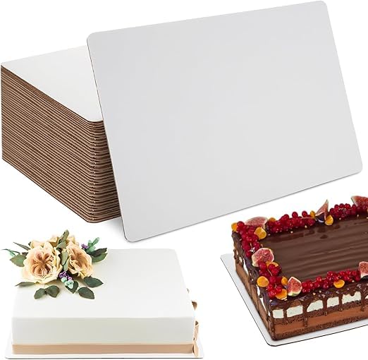 - ممجموعة قواعد كيك بيضاء من الورق المقوى مكونة من 10 قطع، أطباق مستطيلة غير لاصقة لصنع الكيك والحلويات، للكريسماس وحفلات الزفاف وأعياد الميلاد والاجتماعات السنوية مستديرة مقاس 30 * 40 لتقديم الكيك