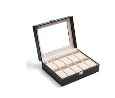 Generic - صندوق ساعات بـ 10 فتحات، منظم تخزين زجاجي مع جلد البولي يوريثين للرجال والنساء