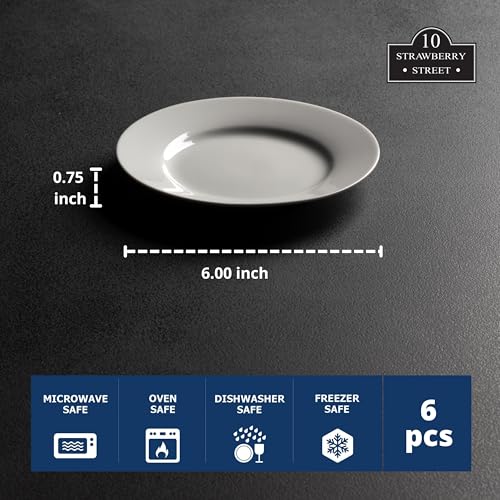 10 Strawberry Street - طبق تقديم المقبلات دائري 15 سم سيمبلي وايت من 10 ستروباري ستريت، طقم من 6 قطع