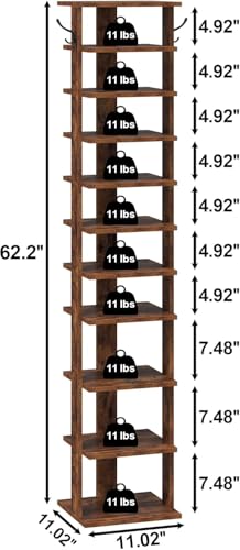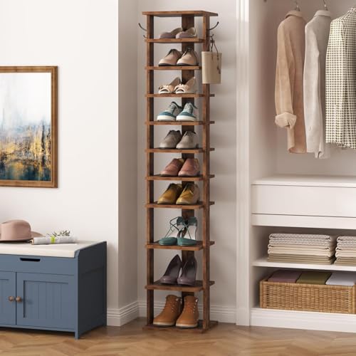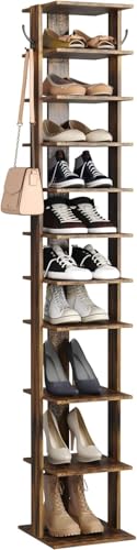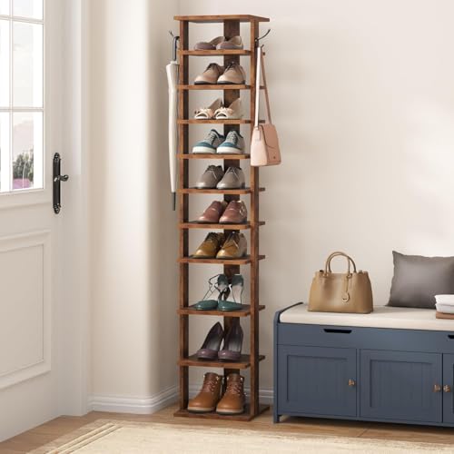Generic - رف أحذية خشبي عمودي، 10 طوابق، بخطافات، تصميم ضيق، لتنظيم الأحذية والحقائب