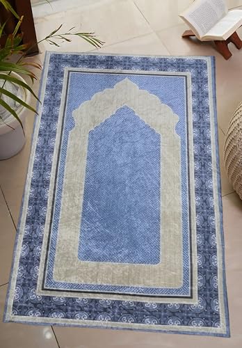 - الجزء السفلي من السجادة مصمم بمادة مضادة للانزلاق، مما يضمن ثباتها على الأرض أثناء الصلاة.