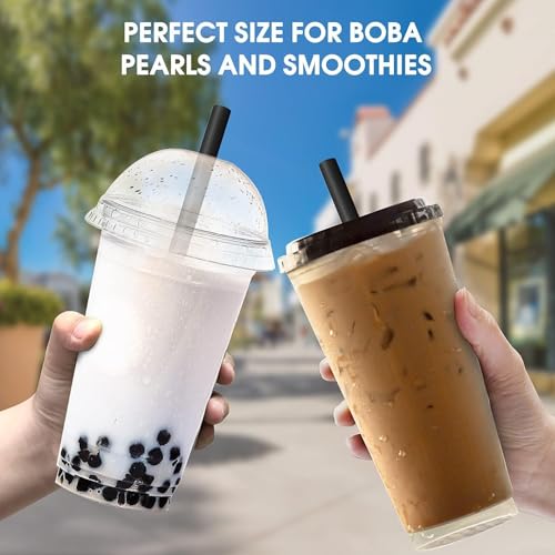 - شفاطة بلاستيك ملفوفة بمظهر أنيق باللون الأسود، حجم مثالي للعصائر والسموذي والميلك شيك وشاي الفقاعات.