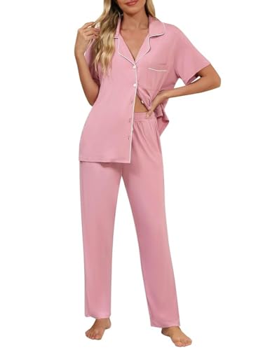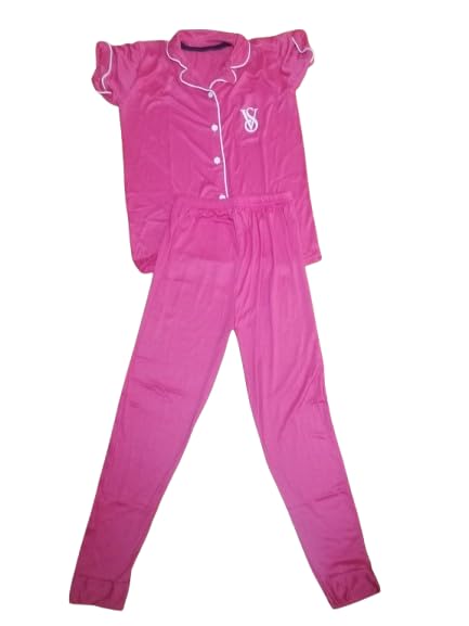 Generic - طقم بيجامة نسائية قطن 100% - ناعم جدا ، نص كم وبنطلون، لون وردي، أكمام قصيرة، فرى سايز - موديل رقم #: 550-271