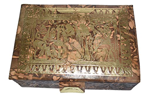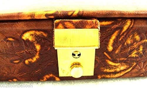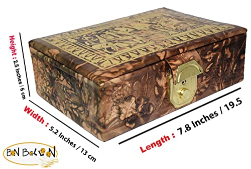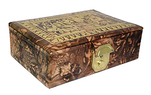 BonBalloon LEATHER - صندوق مجوهرات مصنوع يدويا 100% من الجلد الاصلي المصري اكسسوارات فرعونية كبيرة هدية تذكارية للفراعنة المصرية الهيروغليفية رمسيس ورمسيس ولوتس الدرجة الراقية
