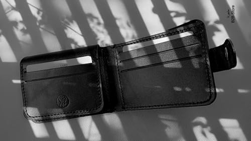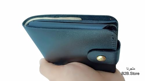 Generic - محفظة جلد بقري طبيعي 100% للرجال تصميم كبير الحجم للجيب مميز- 11 جيب للكروت والأموال - بكبسولة فتح وإغلاق (أسود)
