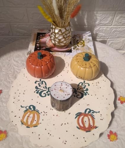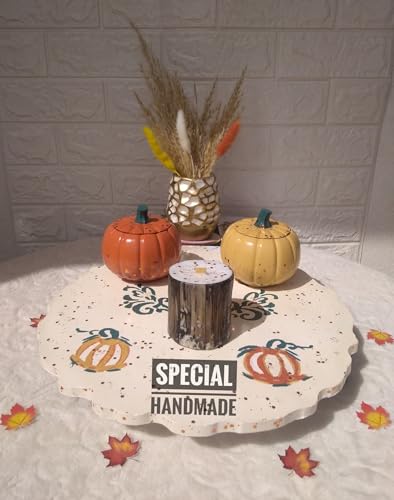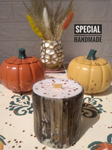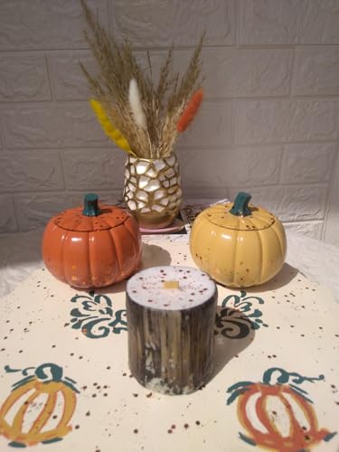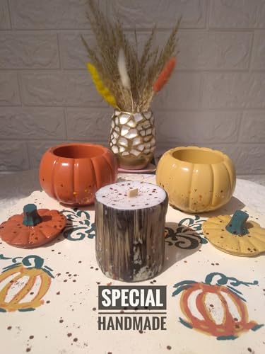 Generic - طقم كونكريت مميز مصنوع يدوياً ١٠٠٪ عدد ١ فازة بنقوش بارزة باللون الذهبي الإيطالي مع عشب البامباس بنفس لون الطقم و٢ بونبونيرة يقطين و١ شمعة شكل جزع الشجرة و١ كوستر دائري منقوش بطباعة ستينسيل