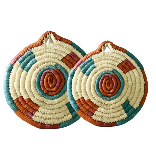 Generic - طبق من أوراق النخيل مصنوع يدويًا بنسبة 100% - تصميم منسوج دائري ملون مزخرف (مقاس 20 سم) | ديكور حائط طبيعي صديق للبيئة، طبق تقديم الطعام والطاولة - حرفة حرفية فريدة
