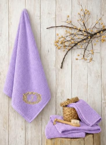 Generic - فوطة حمام فاخرة مطرزة مصنوعة من القطن 100% عالية الامتصاص وسريعة الجفاف بتصميم كلاسيكي عالي الجودة للفنادق والسبا (تطريز حرف J) (أرجواني فاتح، 110 * 55)