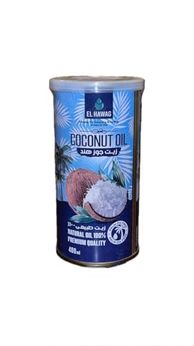 EL HAWAG - زيت جوز الهند الطبيعي 100%، للطبخ والحلويات والتجميل، 400 مل