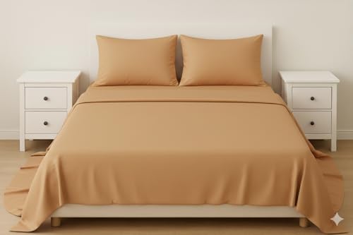 Generic - طقم ملاءة سرير مفرد قطن طبيعي 100%، لون جملي، 3 قطع، ملاءة فلات 120 سم مع 2 كيس وسادة 50×70 سم، ناعم وجيد التهوية
