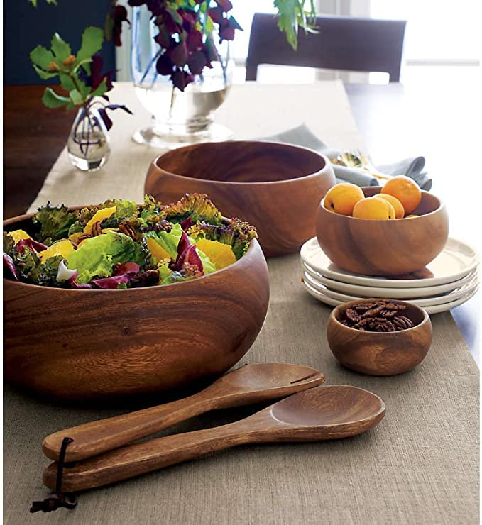 Generic - صَحن من الخشب صناعة يدوية طبيعي 100% معالج بالزيوت الطبيعية سلطة وجبات خفيفة بارد سخن مقاسات مختلفة (12 سم)