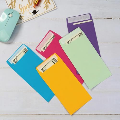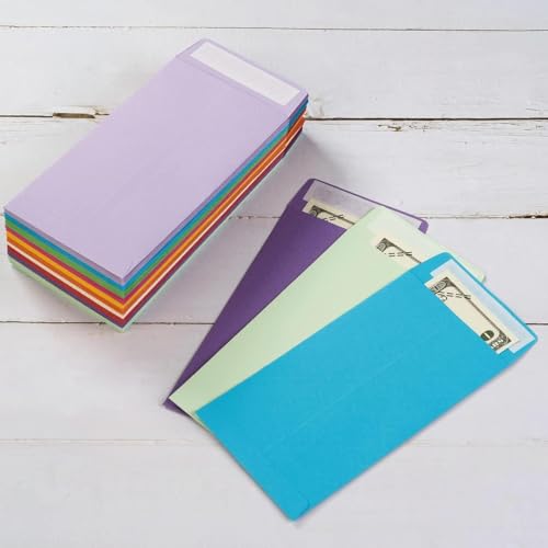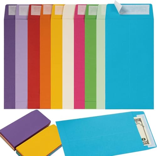 Generic - 100 عبوة من مغلفات النقود 150 غرام من مغلفات العملات المعدنية ذاتية الغلق لتوفير المال والنقود والميزانية والتحقق من بطاقات الهدايا، 3 1/2 × 6 1/2 انش (ملونة)