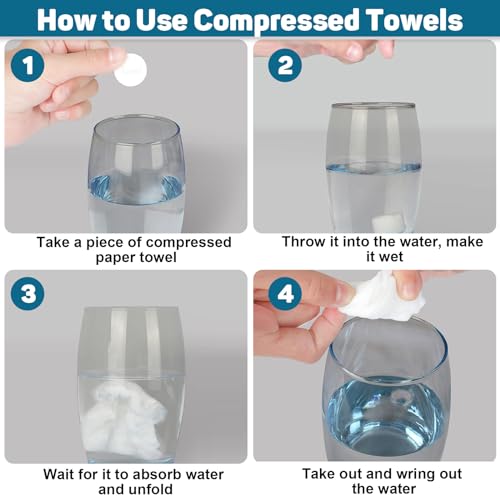 - 【صغيرة الحجم وقابلة للحمل】ستحصل على إجمالي 100 منشفة مضغوطة معبأة بشكل فردي بقطر 2 سم فقط، صغيرة مثل الحلوى. التصميم المدمج وخفيف الوزن يجعل من السهل حملها.
