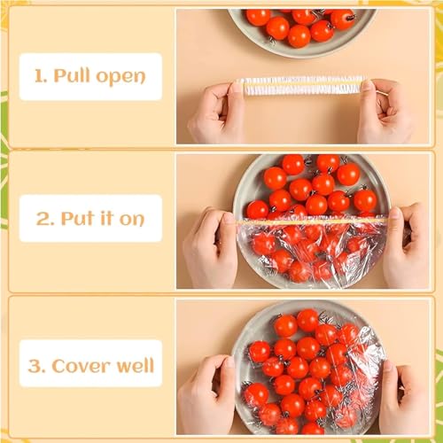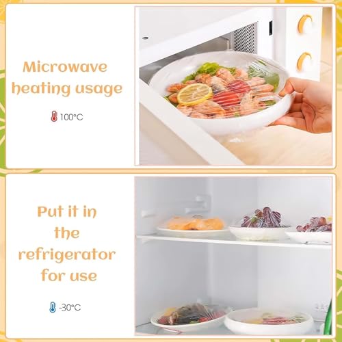 - تصميم عملي ومريح: أغطية طعام بلاستيكية بحواف مرنة تلتصق بإحكام حول الأطباق والأوعية لمنع تسرب الهواء والحفاظ على جودة الطعام